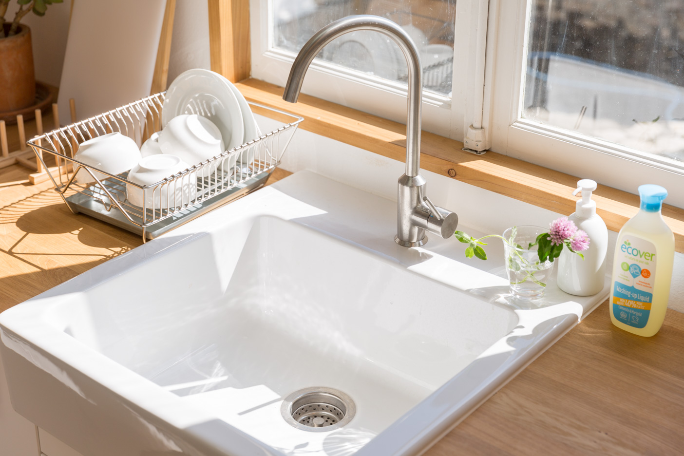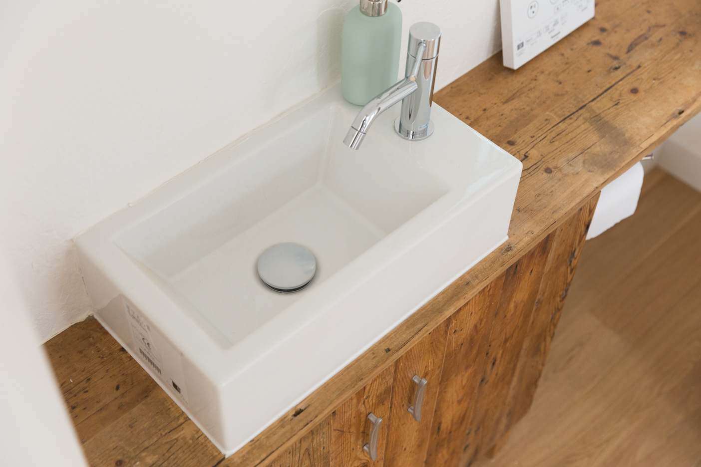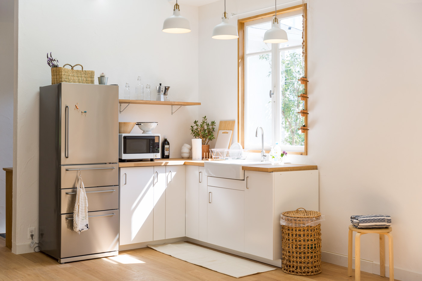 落ち着きがあり、可愛らしさも感じられる塗り壁。並んだ窓のカウンターは物撮りも可能。