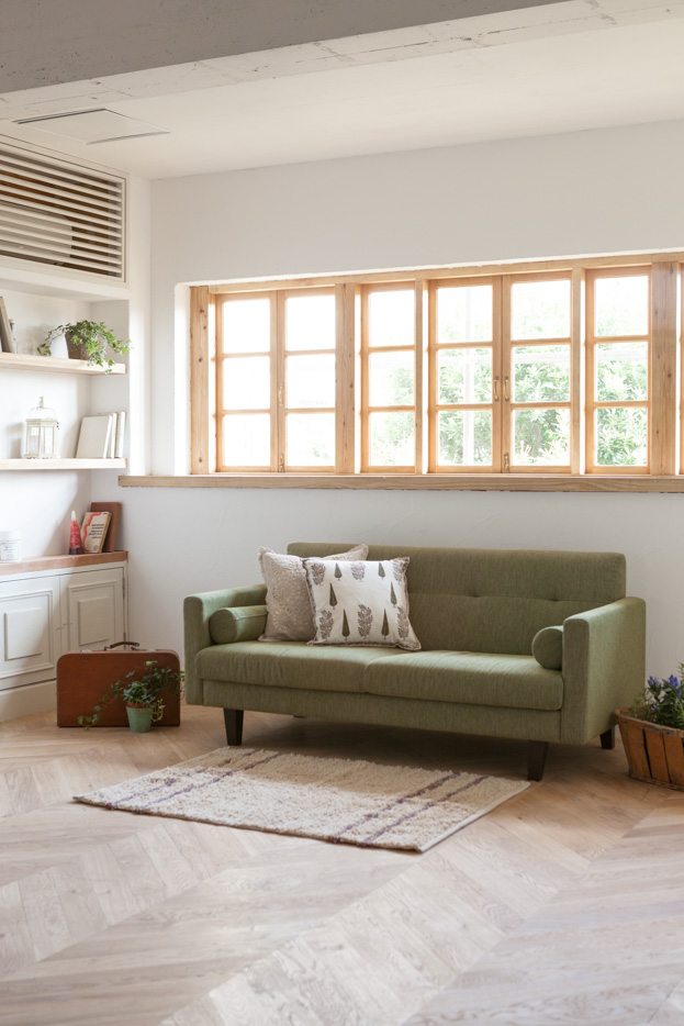 同じナチュラルテイストの1人掛けソファと3人掛けソファがあるのでシーンに合わせて使い分けができます。